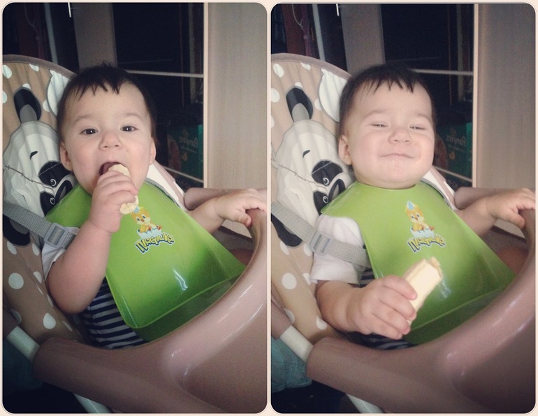 Еда: рацион все тот же. Единственное, начала по чуть-чуть давать пробовать с общего стола. Но это пока было всего 2-3 раза.