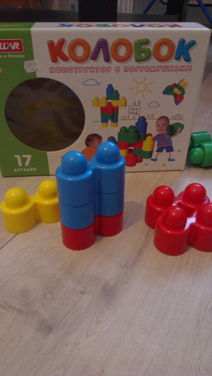 Обсуждение товаровКонечно в игрушки Дима уже не очень то играет)) в основном предметы быта интересны) но хочу написать про наш конструктор Колобок с погремушками. Очень понравилось качество игрушки и приемлемая цена. За 17 деталей отдали около 600 руб. Яркий цвет, никакого запаха, все красиво и безопасно) Хотя на коробке написано 1+, мы купили в 10 мес и очень довольны. Сам только сейчас начинает пытаться собрать, а так все крушил. Кстати, наша бабушка подарила нам юлу этой же фирмы. Она не такая, как в моем детстве был волчок, но тоже очень интересная. Сама юла стоит на полу, при нажатии на кнопку крутится внутренняя часть с игрушками и издается треск. Конструкция надежная. Дима ее несколько раз бросал так, что я уже думала идти за веником, но нет, все цело))))