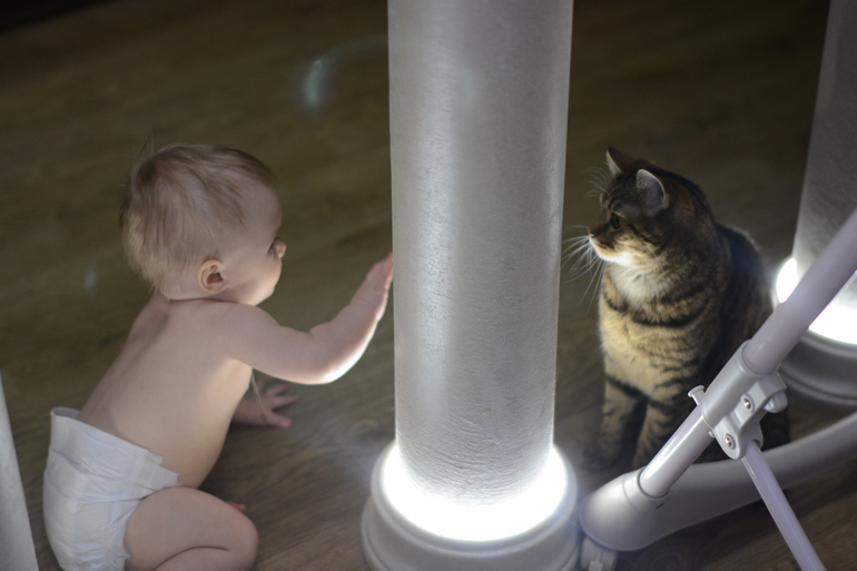 Новая умелка: теперь мы закидываем ногу везде и карабкаемся еще выше))) Скалолаз))