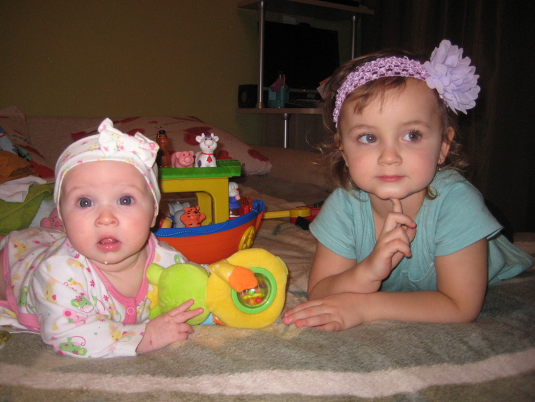 да теперь за ними только глаз и ухо востро))) у нас щас ноги тоже любимое занятие стало,а еще и голос прорезался такие песни заливает))) Дочки красавицы!