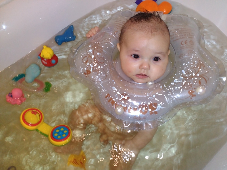 А можно вопрос Вам задать? А как Вы подбирали круг для купания? КАк он должен сидеть на малыше, плотно обхватывать шейку или нет? А то мы купили, а я что-то не пойму! Если он сильно надут, то мне кажется, что круг задушит его, а если подспустить, то он большой сильно((((