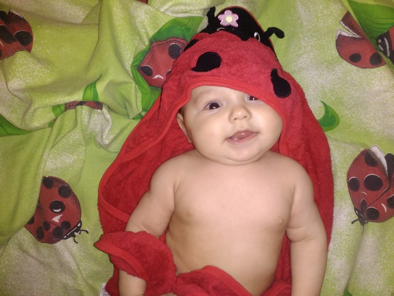 Я чего-то думала.,что кг 8 весит..такой мне тяжелый казался,а нет,всего 500 грамм прибавили..Парень растет у нас серьезный)!!!Просто так улыбаться не будет,только по настроению!!Ярослав всеми силами пытается стоять, а я пытаюсь хотя бы усадить его!!На руках любит сидеть только когда двигаешься,а не стоишь или сидишь на месте-начинает тогда возмущаться,выкручиваться..