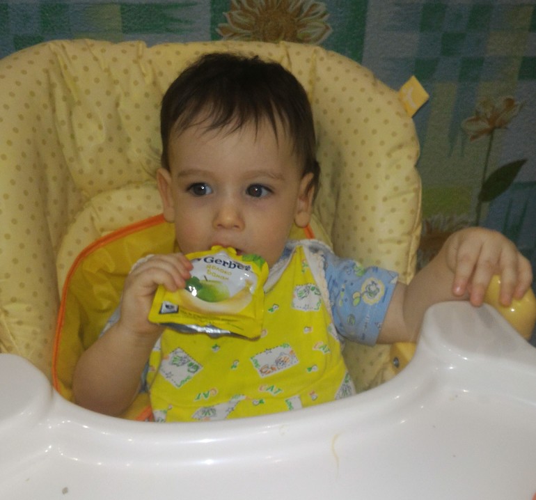 Еда. Ничего нового особа нет, только желток. Наконец то начал есть домашнюю еду, варю.ему супы теперь, хорошо ест фрукты, кусает бананы, груша, главное следить, чтоб много не откусил. Сам ест пюрешки из пакетов)))