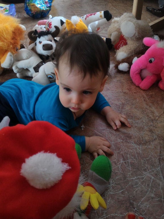 Рост, вес позже допишу. Умелки. В физическом смысле просто прорыв, сначала стал отпускать руки и стоять без опоры, теперь разворачивается и желает 5-6 шагов сам, за одну руку бегает, садитьмя из любого положения, а ползает наконец то только на четвереньках.