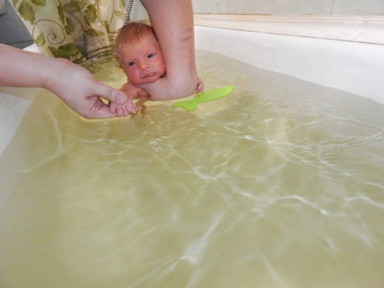 Купаем мы его с первого дня после роддома в большой ванне нашей. Моем каждый раз перед купанием с ромашкой, и раз в несколько дней - со средством. Температура пока - 35-36, планируем опускать.