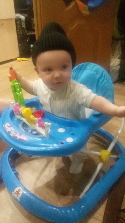 Из умелок: сидим мы уверенно с 8 месяцев, сейчас старается садиться из положения лежа. Посадили сыночка на ходунки, сначала не понимал,что это такое, а теперь бегает по всей квартире и его не догнать.))) Только я стараюсь сажать его не больше чем на 10-15 минут. Пытается встать в кроватке,только вот ручки все равно слабоваты и ползать хочет только вот ручки не дают. Ну ничего мы над этим работаем .