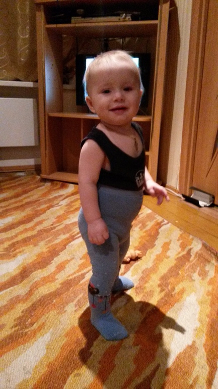 Любим играть в догонялки,убегает от родителей и смеется,аж заливается смехом)))