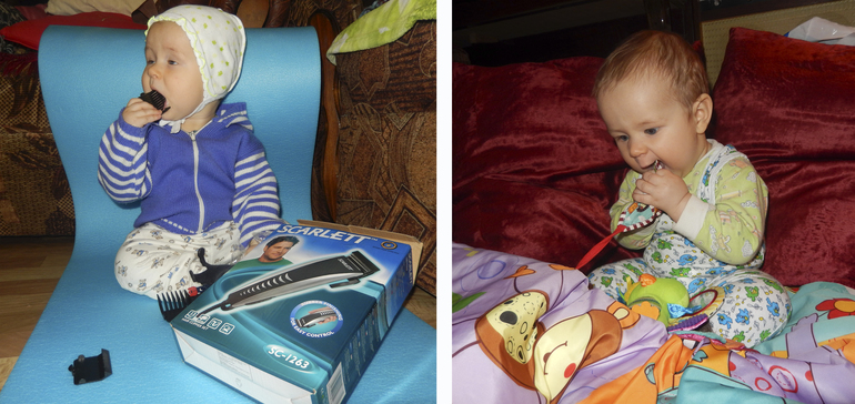 В рот тянет абсолютно всё (ну, как все детки в Степкином возрасте):