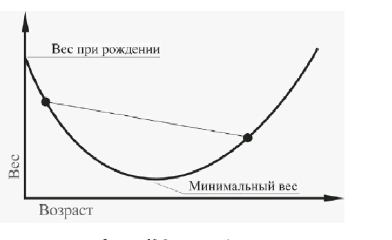 либо от минимального либо от выписки из роддома. уж никак не от рождения! все дети сбрасывают при рождении и если ваш педиатр будет считать от рождения - повод задуматься)))