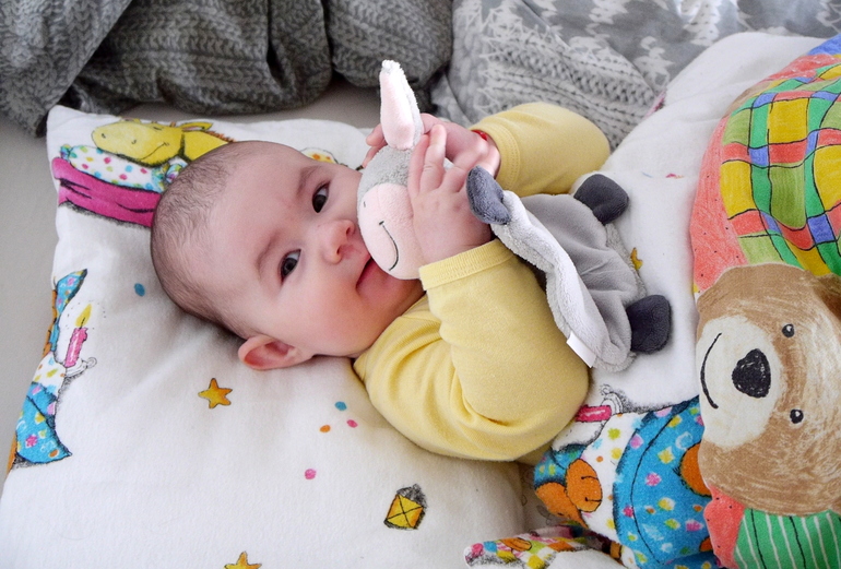 Режима у нас нет. В плане таком, что я не расписываю свой день по минутам. Потому что мы путешествуем, встречаемся с друзьями, я не представляю, как бы я, живя по точному расписанию, жила полноценной жизнью. Если у меня кормление строго в 18, то, значит, мне надо в это время быть дома? Это не для меня. У нас два сна каждый день по 2 часа где-то. Но Илария сама решает, когда ей ложиться спать, между прочим, это всегда приблизительно в одно и то же время. Но я повторяю, она сама себе установила этот режим. На ночь засыпает с грудью, если нет, то я ее оставляю, включаю мобиль в соседней кроватке, и она сама засыпает. Просыпается ночью 3 раза где-то покушать. Утром встаем с ней в 10, иногда в 11. Иногда в 8. Мне важно высыпаться. По-моему, Иларии тоже, потому что она спит иногда даже дольше, чем я. Просыпаюсь, голопопие минут 20, я спокойно пью кофе, включаю музычку, день начинается. Потом умывание, намазывание всё тело Мустелой (утром Мустела, вечером Linola fett). Аххх если б вы только знали, какая у меня уже коллекция кремов против АД...