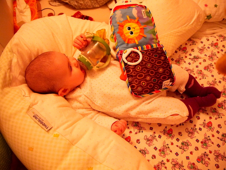 Что касается прикорма, то я начала по таблице ВОЗ. Ввела потихоньку каши, фрукты, овощи. Месяц она ела не более 50 грамм, я не заставляла. Потихонечку увеличили норму до 100. Утром каша у нас на моем молоке (каши все безмолочные, я весь день сцеживаю свое молоко, грамм 100-120), чтобы утром приготовить кашку, днем даю овощи, варю картошечку, брокколи, кабачки, тыкву, делаю супчик. Кроме этого еще кушаем белую морковь, рыжую морковь (правда, высыпало на нее пару раз), из фруктов яблоки, груши, бананы, персики,сливы, абрикосы. Ну и грудь, конечно, не по часам, а когда Илария захочет. Вечером каша на воде (как правило, рисовая) с фруктами. Мясо...мне кажется, ребенок мой к мясу еще не готов, да и молоко грудное всё же, пока я решила не давать, буду позже вводить. Даю водичку вместе с едой. Запоров ни разу не было (ттт). Ну и она пьет только из ложечки. потому что ни соски, ни бутылки никакие она не признает. Правда, поильник иногда жалует. Вот, например , чаёк на ночь.