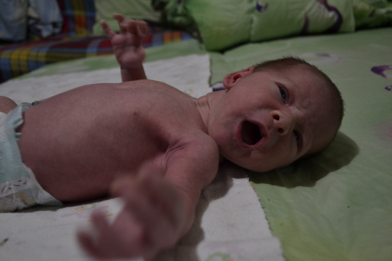 Малыша немного беспокоит животик, но не так, чтобы это ему очень мешало. Скорее, это мешает нам с мужем, в таком состоянии он даже на секунду не хочет слезать с рук.