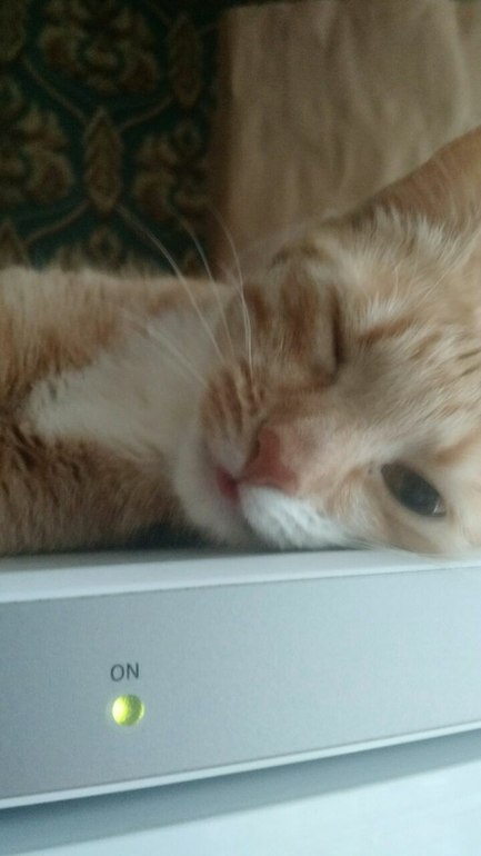 Любит наблюдать за нами, а кошку всячески игнорирует. Иногда мне кажется, что она его боится, потому что с первыми его криками, Элис подбегает ко мне с видом, кричащим "Успокой его", а потом бежит лежать на холодильник.
