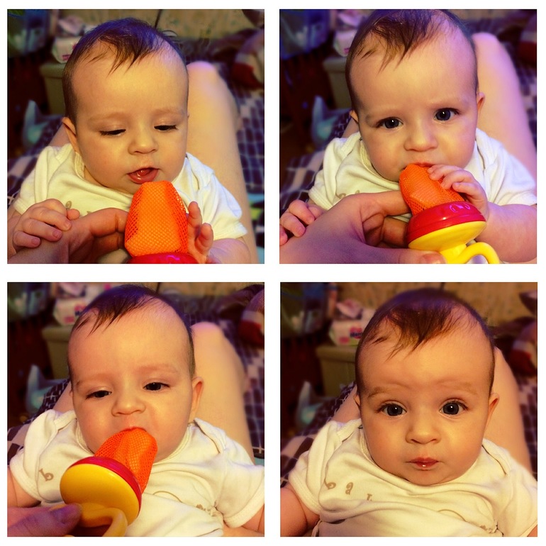 Я просто одним кусочком положила, чтоб сразу много сока и мякоти она не смогла съесть, прикорм только-только начали пробовать. А позже буду либо мелко резать, либо тереть