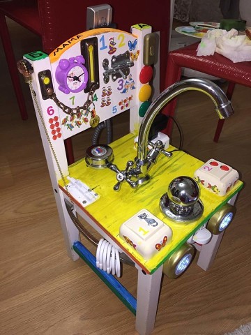 у нас два бизиборда - один прикручен под подоконником рядом с батареей - все равно место пропадает, второй под кухонным столом к стене - к кухонному столу приклеили лампочку из фикспрайса - дочь сама лампочку включает и под столом возится - у нее там как домик свой....сейчас дочери 3 года, доски прикрутили, когда ей было 1,5 - до сих пор играет
