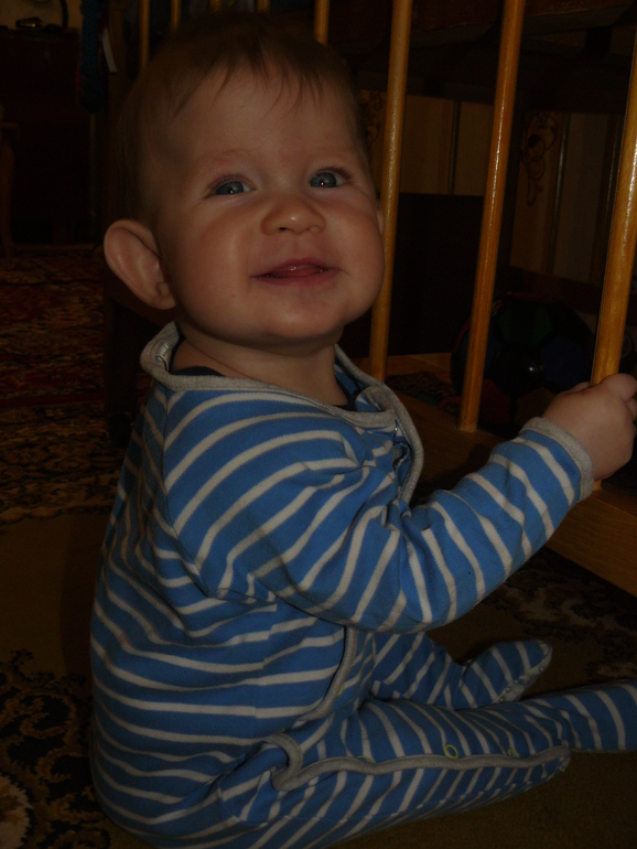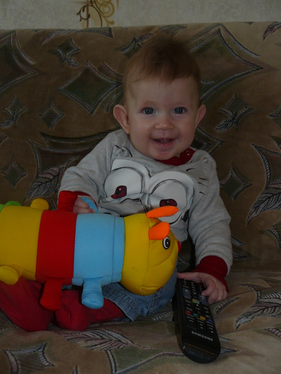 Умелки особо так не прибавились. Ползает лениво, в основном попой вверх, сидит. А самое любимое у нас это стояние и ходьба, прям аж пританцовывает, так ему весело… а мне как,постоянно с ним так ходить)Любит машинки и воздушные шарики, прям взахлеб смеется, когда с ним играет! А, еще любит целоваться! Обнимаешь его, а он прислоняется открытым ротик к щеке и причмокивается, так клево и так мокро