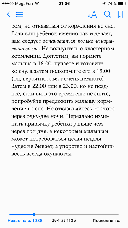 Мне метод помог в плане того, что стал днем спать, раньше вообще не могла уложить. А про ночь да, мне тоже не понятно, даже чаще стал просыпаться теперь. А у вас есть эта книжка в электронном виде, у меня просто неполная версия, а хочется до конца дочитать
