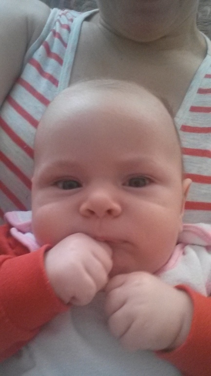 Как в той рекламе - мой сынок стал большим! Режим организовался, спит хорошо и днем и ночью, засыпает сам за редким исключением. Кушает каждые 2-3 часа, всем улыбается и болтает что-то на своем тарабарском. Кулаки во рту постоянно, все в слюнях, да рано еще зубам, не верю! Стал все пальцами трогать, понял наверное что они у него есть, пытается маленькие детали ухватить, вроде пуговиц на моей одежде.