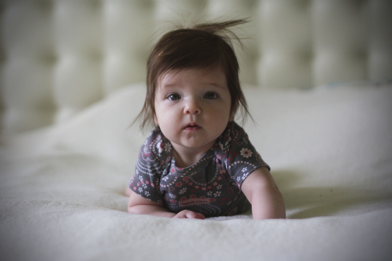 Не, ну не копия, но похожи, видно, что братик и сестричка). У дочки в четыре месяца уже прическа такая шикарная)!