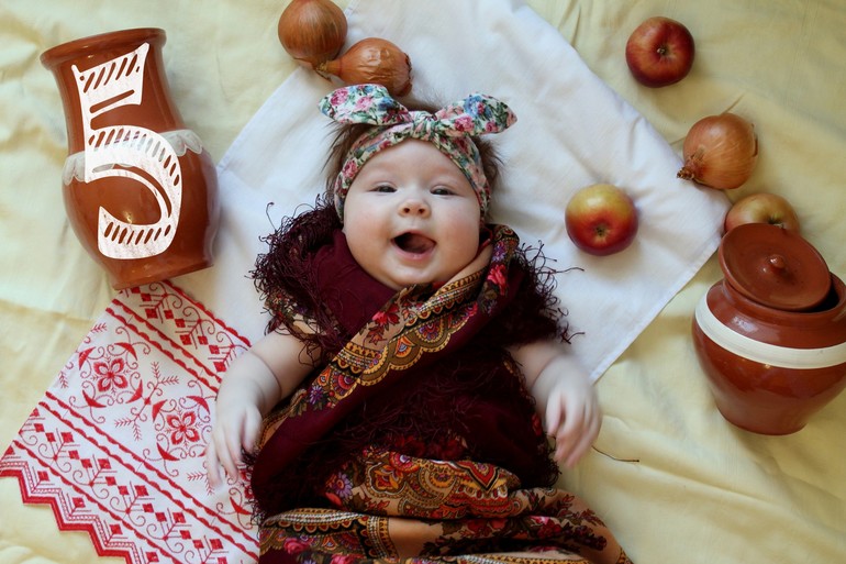 Физическое развитиеВремя мчится вперед,дочка растёт со скоростью ракеты.На рубеже пятого месяца она начала смешно мычать,причём это может быть,как мычание 'плач',так и просто общение.Гнев-это сжатые кулачки,поджатые губы и желание что-нибудь стукнуть. Самое приятное,то что теперь Соня тянет ручки,а когда берешь,приобнимает и утыкается в грудь,а я готова дышать,дышать,дышать...этот запах ангельской макушки для меня сродни погружению в нирвану)) Переворачивается на бок,спину и животик.Ползать ленится,очень потешно наблюдать как мычит,уткнувшись в плед,двигается не охотно,отталкиваясь от родительских рук и смешно отклячивая попец))Осознано гремит погремушками,вверх-вниз или сжмая-разжимая в руке.Всё хочет взять в ручки, а затем благополучно отправить в рот на ослюнявливание))Постоянно пытается сесть.Полностью на грудном вскармливании.Купается теперь только в горке,в воду муж добавляет ромашку и валерьянку,но мне лично кажется,что от этих запахов больше успокаиваются родители,нежели Соня.После купания, в 21.00 сон,на ночь и почти всегда днем эту егозу пеленаю,что ей совершенно не нравится.Ночью этот маленький Гудини освобождается от пеленочных пут и к утру спит с раскинутыми над головой ручками.Спит в своей кроватке,я от совместного сна ни только не балдею,как пишут в инете,но ещё и очень затекаю и совершенно не высыпаюсь((На покушать начинает ерзать в час и четыре утра,как перевести на одно ночное кормление,как советуют для нашего возраста в педиатрии,ума не приложу...Главной проблемой стало лежание в коляске,если нет деревьев над головой и рассматривать нечего,начинается скандал,который продолжается пока ни возьмешь на ручки.А спит на улице 40',хоть часы сверяй.Вообще сейчас у нас 4 дневных сна по 40'-1,5 часа,в промежутках играет и капризит,за что получила прозвище капризуха)))Ну и конечно,кнопочка,пуговка,ягодка,любимка и много других,которые все равно не могут передать всей родительской любви)))