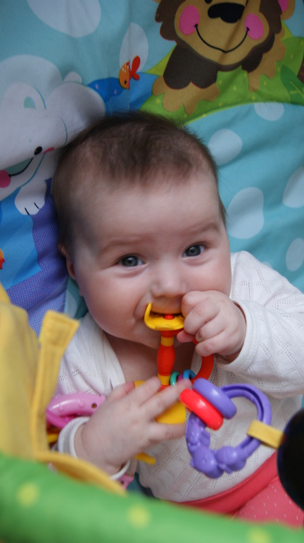 Начинается лепет - может мне на что-то поругаться набором слогов, да и сегодня за ужином что-то долго нам "рассказывала" по новому, слогами, а не так, как раньше. Немного фото моей радости.
