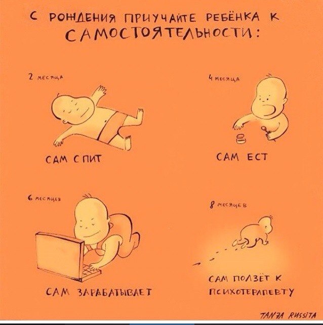:DDD Вот уж точно! Это как с некоторыми родственниками у нас: "А сколько она должна есть, ползти, спать, смеяться, ночью просыпаться и т.д.?" Вопрос, а кому ДОЛЖНА? Иногда сомневаюсь в адекватности некоторых родителей, которые стараются впихнуть своих детей в стандартные, а ещё хуже в нестандартные рамки. Вместо того, чтобы наслаждаться счастьем, грызут ногти, разглядывая своё чадо под лупой и сравнивая с другими детьми