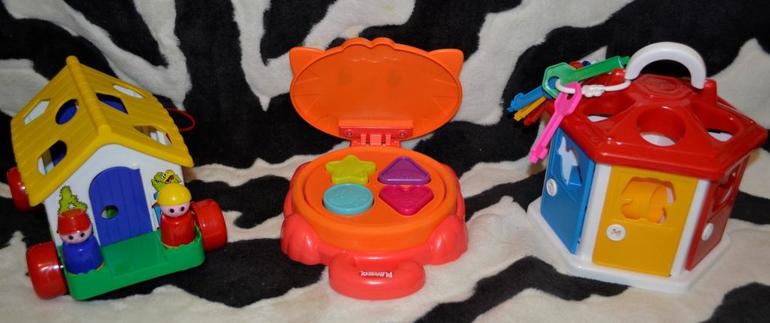 Сортеры пока не вызывают интереса, только погрызть человечков и фигурки или ключиками погреметь (и покатать машинку).