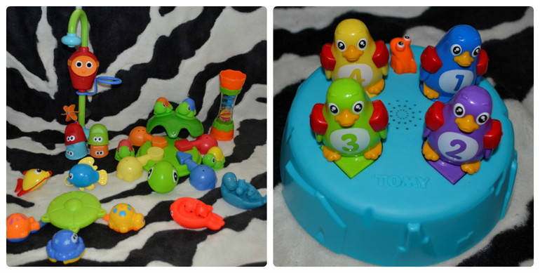 Игрухи для купания. Нравятся все, но самые-самые - это фонтан и резиновые. А пингвинам нет равных. На лягушку нажимаешь - и пингвины по одному прыгают в воду по веселенькую музыку. Играем не только в воде, но и на суше (шариками, втулками, крышками и т.д.). Супер игруха (для моих детей).