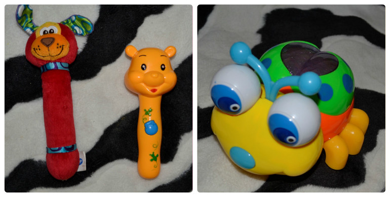 Клевые штуки. Мягкая пищит и шуршит,желтая - поет 3 детские песенки - играют с удовольствием. Жук - ФАВОРИТ. Он поет песенку, кружится, хлопает глазами. Его даю только рядом с собой (легко можно пораниться).