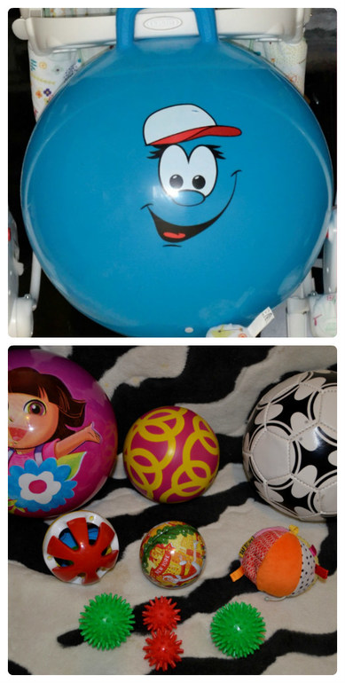 Мячики - это отдельная тема. ОООчень любят - хохочут в залив. Уже умеют катить мне, но друг другу нет. Массажный покрупнее у нас сдулся, oball я раздавила, но новые уже в пути. На попрыгунчике занимаемся с 2 месяцев, сейчас еще сами и погонять могут по комнате. Для занятий уже маловат, скоро придется покупать фитбол, а этот на вырост для самостоятельных "попрыгушек". К массажным привлекаю особое внимание (по совету массажиста), стараемся чаще катать. Сын любит больше всего футбольный, а дочь малиновый с желтыми кругами.