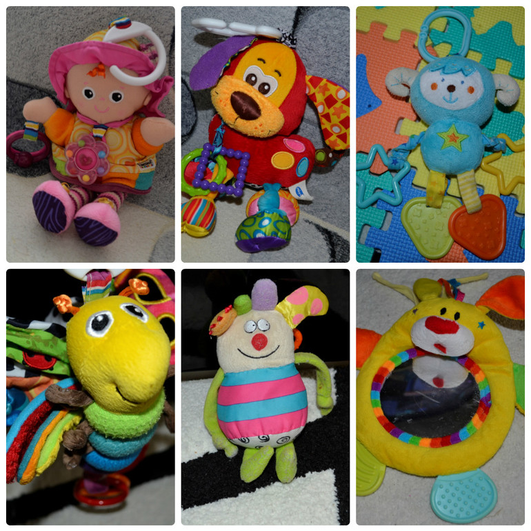 Всякие мягкие "гремелки", "шуршалки", "шумелки" стали не так интересны, как раньше. Могут поиграть, но совсем чуть-чуть, хотя раньше прям трусились за ними (и коврик развивающий с дугами уже не вызывает особого интереса).