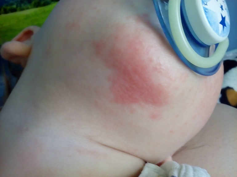 Малышу скоро 11 мес. Недельки три назад начались вот такие высыпания под подбородком и мелкие на лице и шее.