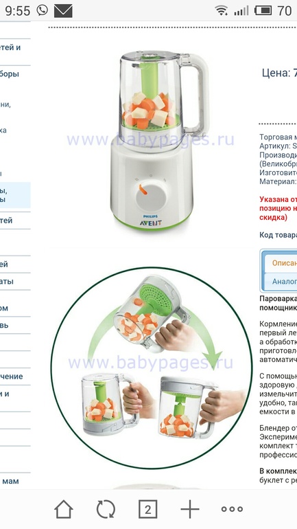 Пользуюсь 4месяца.супер вещь.делаю пюрехи из кабачка,брокколи, цв.капусты,тыквы,картошки,моркови,курицы, индейки,кролика, яблок,груш!!! гораздо вкуснее баночных.15-20 мин.и всё готово.делаю сразу на два дня,храню в холодильнике. Можно порции любого объема сделать и любой консистенции. Для малявок -совсем пюреобразное, для малышей постарше с кусочками.и не надо перебивать из пароварки в блендер,все сделать в одной ёмкости. Вообщем,я в восторге!!!!