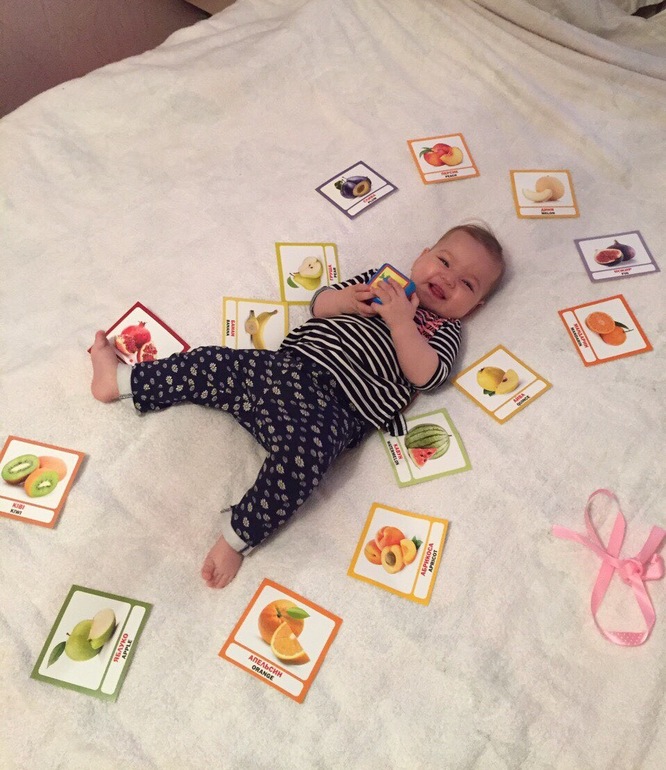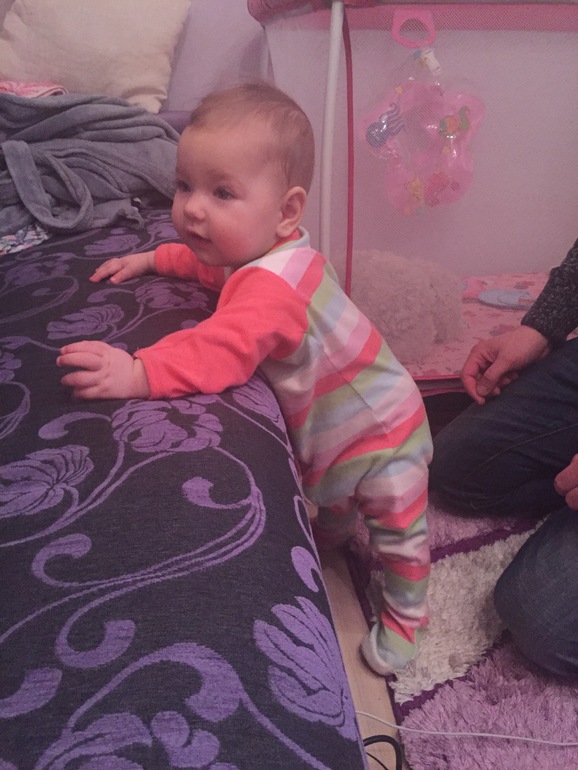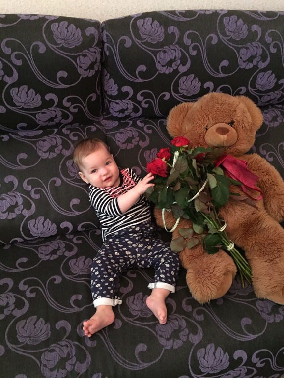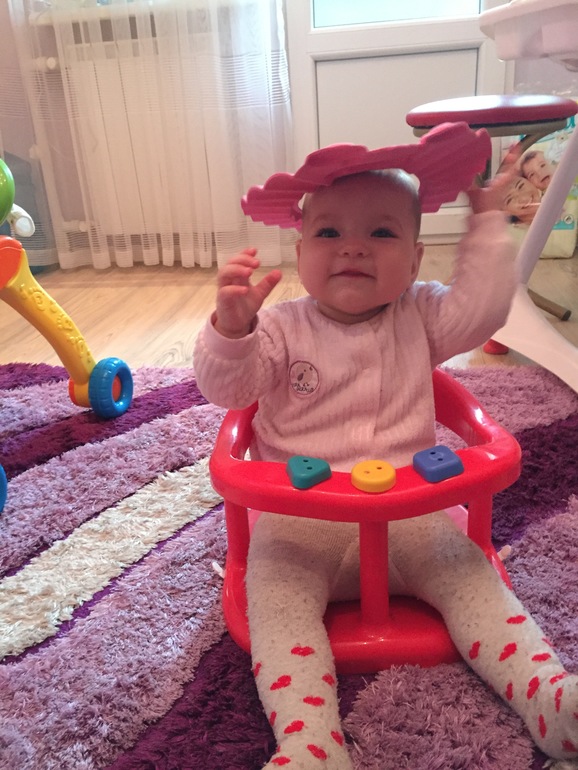 ХвастаемсяНапишу наконец про наш 8 месяц)) Рост,вес пока не знаю) На вид дюймовочка)) В этом месяце произошел прямо таки скачок развития) Во первых дочка сказала Мама!!!!!Юююху! Ма-ма-ма-мамкала она давно,но сейчас говорит осознанно) Захожу я в комнату,а она "мама") у меня аж мурашки по коже)) теперь зовет меня из кроватки когда просыпается, говорит когда я прихожу "мама")) Мы уже достаточно хорошо сидим,но сидеть не любит, сразу хочет вставать, а сама встать не умеет)зато если поставить,счастью нет предела! Будь ее воля стояла бы целый день!) Врач разрешила ей стоять,говорит готова)) Еще очень любит пинать мячик,когда стоит,поднимает ножку одну,на одной стоит и пинает как настоящий футболист,папа кричит гоол,ловит мяч и она визжит от восторга!)) Ползает по пластунски, но куда ей надо доползает достаточно бысторо,на четвереньки стает и раскачивается,что делать дальше пока не понимает)Массажи отменила,делаю сама) из круга мы выросли,купили стульчик для купания,супер вещь!) и поанируем ходить теперь плавать в бассейн)) Ну вот вроде бы и все) Много гуляем,очень любим голубей,кошек,собачек и других деток!))Ну и фото конечно же)