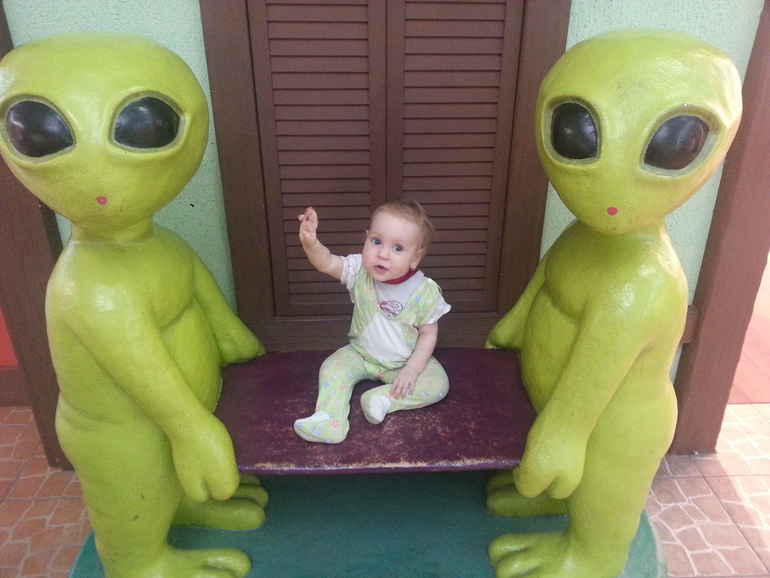 А два дня назад мы пошли в боижаший торговый центр. Там наверхк есть разные фигуры животных, фонтаны - в общем, детский городок. Анюта была в восторге.