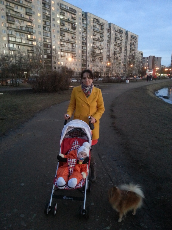 Гуляем 2 раза в день - на первый и второй сон. Иногда, когда хорошая погода, гуляем еще раз вечером. Достаем маленькую коляску - Ане в ней очень нравится - обзор лучше.