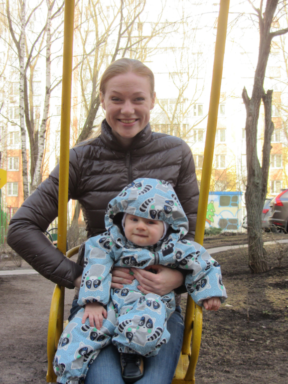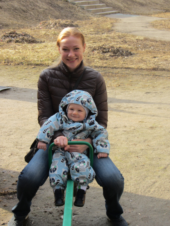 Тоже наслаждаюсь качелями! Но у нас во дворе еще и маленькие есть специально для совсем крошек безопасные. Свн тоже обожаеи сам качаться :)