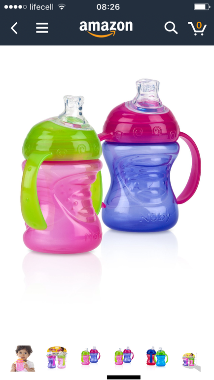 Дочка с рождения не признает бутылки с сосками, хотя пустышку берет. Поила с ложечки, но с введение прикорма решила купить поильник, потому что с ложечки мало воды выпивала, да и не удобно это. А скоро лето, на улицу тоже водичку надо брать. Купила Avent с пингвином 6+. Доча сразу стала из него пить, хотя и носик достаточно жесткий. Мне очень понравлся. Доче было6,5 месяцев.