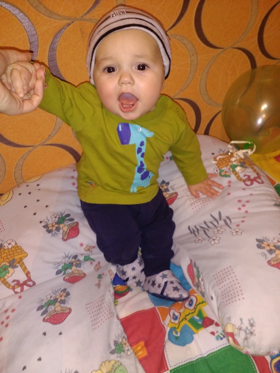 А за 2 дня до 7 мес. Яря в кроватке взялся за бортики(защита) и встал на коленки)зафоткать пока не успела))).Теперь как надоест ему лежать, он встает так и пищит-зовет меня!!Такой сильный и крепкий мальчишка!!