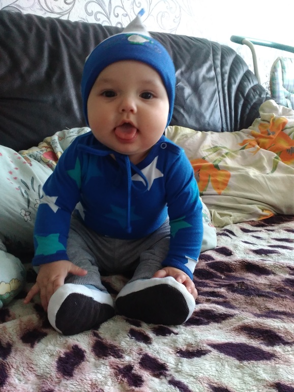 Это я пыталась заснять Ярослава в 6 мес якобы)))На самом деле ему там уже 6 мес и 5 дней. Но он не хотел фотографироваться,вернее одеваться,вот что получилось![]()