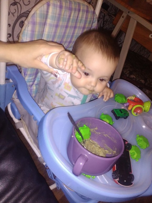 Кушаем с прикорма уже : кабачок,брокколи- в чистом виде не очень хорошо ест,не нравится ему. Картофельное пюре-божает(может съесть грамм 100). Творожки тоже любит-грамм 50 съедает.Печенье Милупа,галетное,бублики трескает. Фруктовые пюрешки ( яблоко+банан и яблоко+груша), банан. Вчера давала брокколи+кабачок+гречка тоже хорошо покушал. Введу ближ.неделю тыкву+морковь и будем начинать безмолочные каши кушать. При этом кушает грудь хорошо.![]()