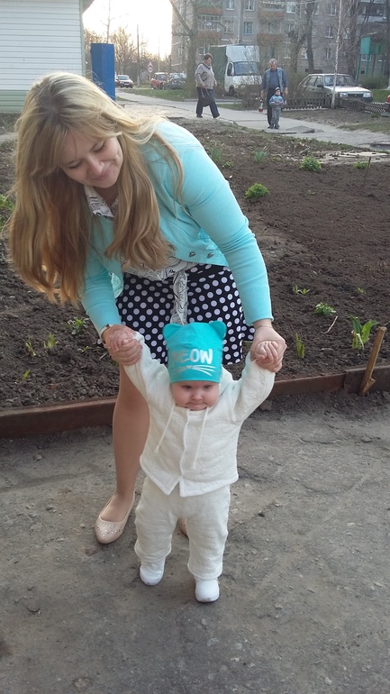 Из наших творческих умелок наша гордость - это танцы. Танцуем всегда и в любом настроении. Попой, руками, ногами...без разницы...лиж бы играла музыка. В ладушки играем, в куку играем. Очень любит с книгами копаться, показывать научилась на любых картинках где есть кошку, лягушку и зайца. Остальных не хочет))) Ругается))) И начинает с деловым видом листать книгу. Показывает глазки у игрушек и носик. Мячик ногой пинает, пытается бросить его как мама, но не понимает почему руки не отпускают его, не дошло еще что надо их разжать))) Хотя кидать все подряд очень любит и сидит смотрит куда упало. Машет всем пока...если настроение плохое, то не машет)))) Пробабушка научила ее здороваться, теперь всем кто ей руку протягивает и говорит: "Здравствуй, Варя" тянет ручку пожать))) Ну естественно мы всем показываем какие большие ))))))Гулять мы очень любим, особенно как стало тепло.