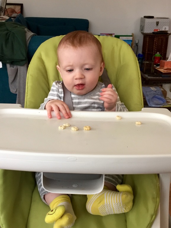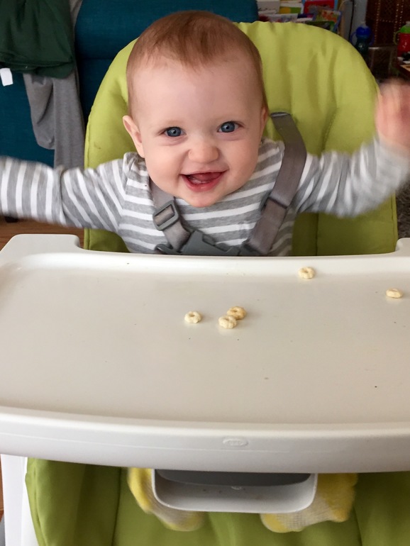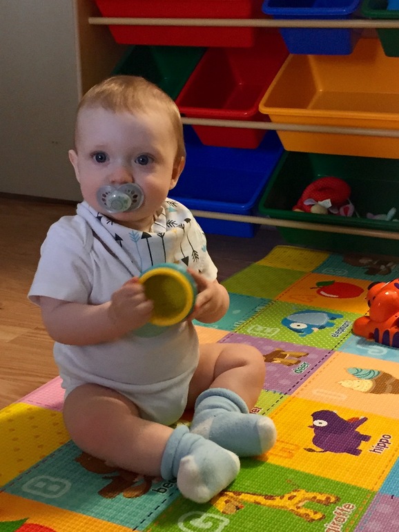 Из умелок: научился прощать на четвереньках, я теперь за ним еле еле успеваю, по всему дому как юла крутиться, под столы залазит, все самые маленькие пылинки рассматривает и тянет в рот. Кушает маленькие печеньки и печеньки из йогурта, пока я насыпаю еду в тарелочки, иначе будет крик на весь дом, почему мама так медлит с обедом! Покушать очень любит, чему я очень рада, конечно. Уже вырос из автокресла, купили новое, которое идёт до 7 лет уже. Папа наш говорит, не автокресло, а трон) ну мама старалась, перерыла все блоги и вебсайты, и нашла самое безопасное автокресло на американском рынке - clek foonf