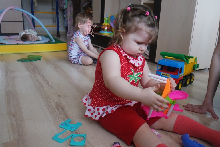 В остальное время в зале ( дети до 3х лет играют вместе, те рядом каждый сам по себе)))
