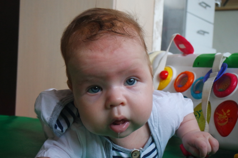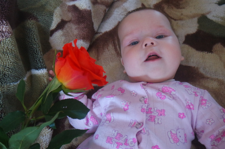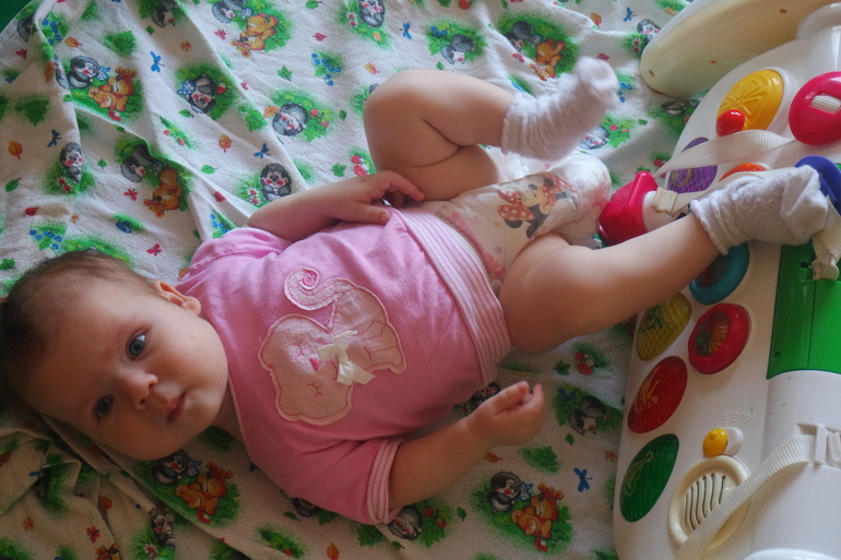 8 апреля Милочка легла на бочок, пока я бегала за фотоаппаратом, она перевернулась на живот)))