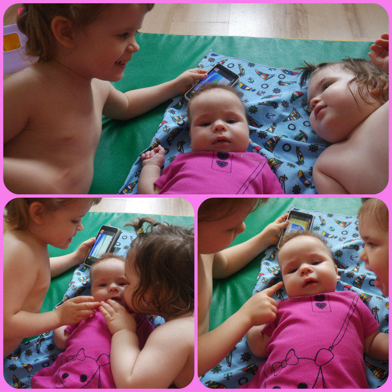 ХвастаемсяОй, уже? Старшая дочка очень радуется новым умелочкам сестренки, говорит, что Люда скоро научиться сидеть, кататься на машине и ползать!!!