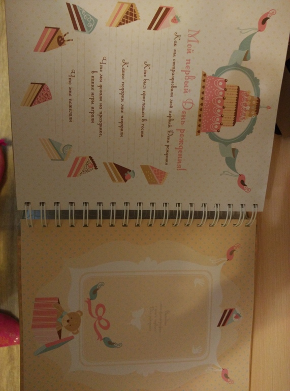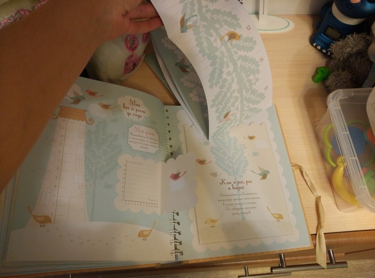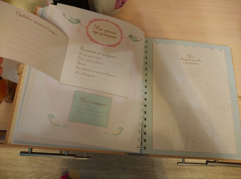Классный альбом, мне коллега на работе подарила, а я потом крестнице такой же покупала. Села заполнять перед годиком - нелегкое это дело))) там много всего, фотографии разного размера. зато на дне рождения гости с удовольствием полистали