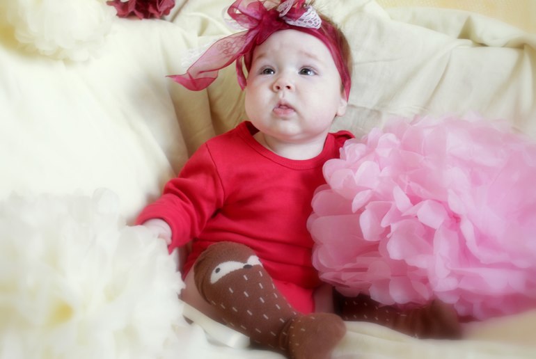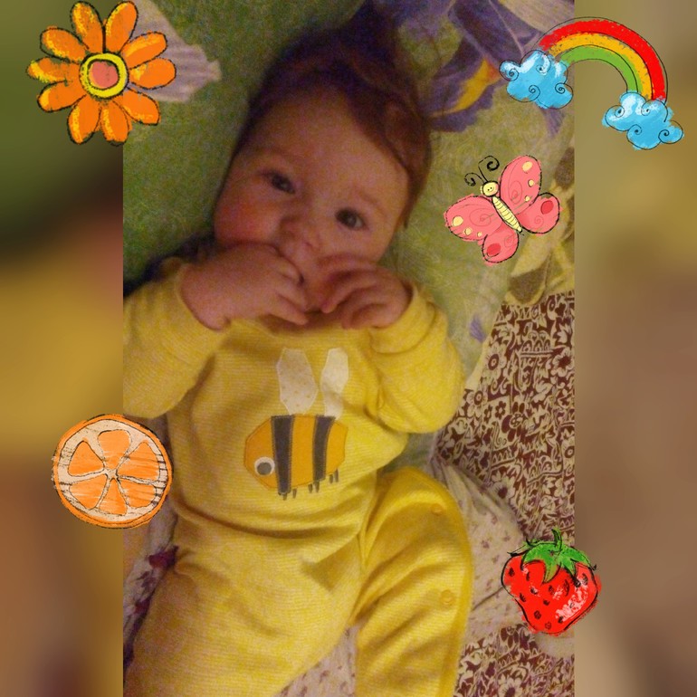 Из моих переживаний-мы не ползаем,прям не хочет,один раз попытается,а потом утыкаетя в плед и мычит((думаю ,что одной из причин может быть отсутствие курсов массажа у нас просто нет массажиста,а моего разминания и зарядки видимо не достаточно((Стараюсь не нагнетать по этому поводу,ведь все днти разные...За то лепечет только в путь,произносит разные звуки и слоги,мое любимое МА)))конечно,проскальзывает еще не осознанно,но я балдею))Хохочет и повизгивает,плач отошел на задний план,теперь выражает только глубокое недовольство.На последнем взвешивании прибавила 300 г и 2 см и того 7260 и 65 см и мы полностью на гв,толстечки-это не про нас)хорошо сложенная девченка,все на месте и даже есть складочки))