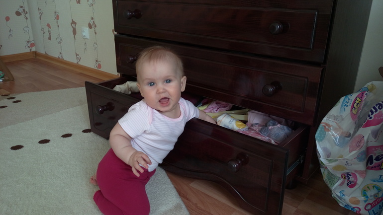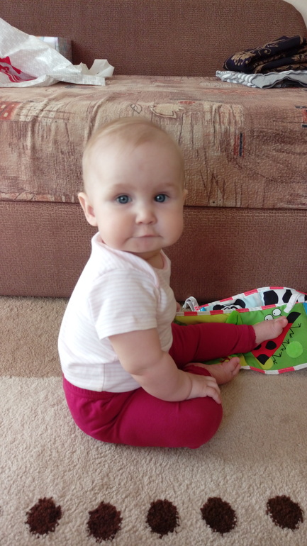 Интеллект ребенкаСегодня Василисе 8 месяцев! Мы их встречаем на даче, родственники делами занимаются, а мы вдвоем развлекает друг друга :) неделю назад был наш первый выезд и ночь вне дома! Все прошло отлично, на природе моя девочка уснула в 17-30 и проснулась в 6-30 (это обычное время просыпания). Ночью спала со мной, крепко и хорошо :) Этот месяц был богат на новые умения! Крепко встала на коленки вертикально с опорой, сейчас даже без опоры пытается, следом и на ножки с опорой встала :) научилась ползать на четвереньках, сидит без опоры! Начала танцевать немного, без особой охоты. Первое слово! Не могу понять, оно или нет, но четко говорит "дай". Причем когда что-то не может взять в руки или в рот. Не уверена, может надумываю :) Еще у нас начался мамский период! С криком мамамама ползет за мной быстро-быстро, как только я отхожу, на ручки просится аналогично. Но если вообще исчезаю из вида спокойно играет :) вообще речь ее богата звуками! Слоги ма, ба, да, та, па, ка, ва и с другими гласными периодически. С недавних пор их сочетания бака, букака, адай и так далее :) болтушка растет! Повторяет если покивать ей головой, смотрит, куда я пальцем показываю. На "Где собачка?" ищет глазами нашего йорка :) с папой и мамой не работает так пока :) понимает "айайай" - перестает делать то, что делает, научилась у собакена видимо :) постоянно хохочет, даже сама с собой! С упорством маньяка любит кусать и щипать носы! Моя сладкая девочка! Фото ниже