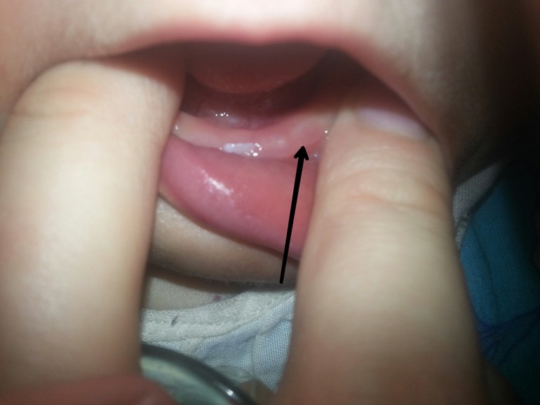 ЗубыДевочки, гляньте плиз! Нижний парный уже прорезался, а рядом с ним белая полосочка в десне,это зуб? На фото отмечено стрелкой